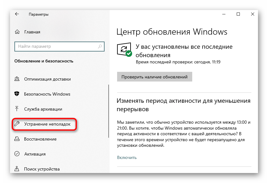 В меню слева потребуется кликнуть по надписи «Устранение неполадок».