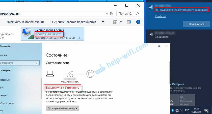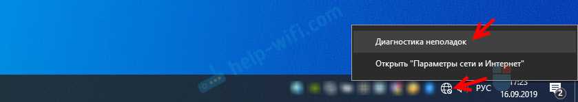 Когда после подключения кабеля, или после подключения к Wi-Fi сети (или попытки подключения) вы видите ошибку «Неопознанная сеть», «Подключение к интернету отсутствует», «Нет подключения. Вы не подключены ни к одной сети», «Без доступа к интернету» и т. д., то запустите диагностику неполадок.