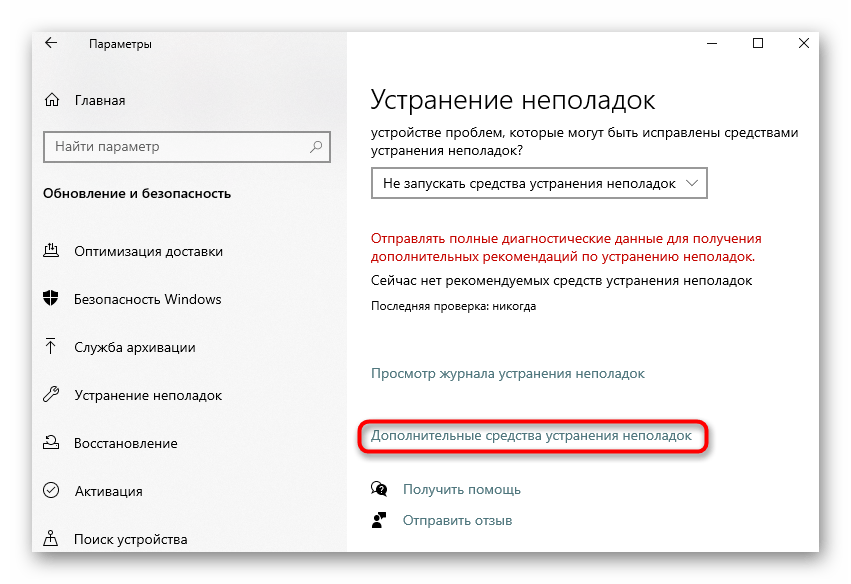 Далее отыщите текст «Дополнительные средства устранения неполадок» и нажмите по нему.