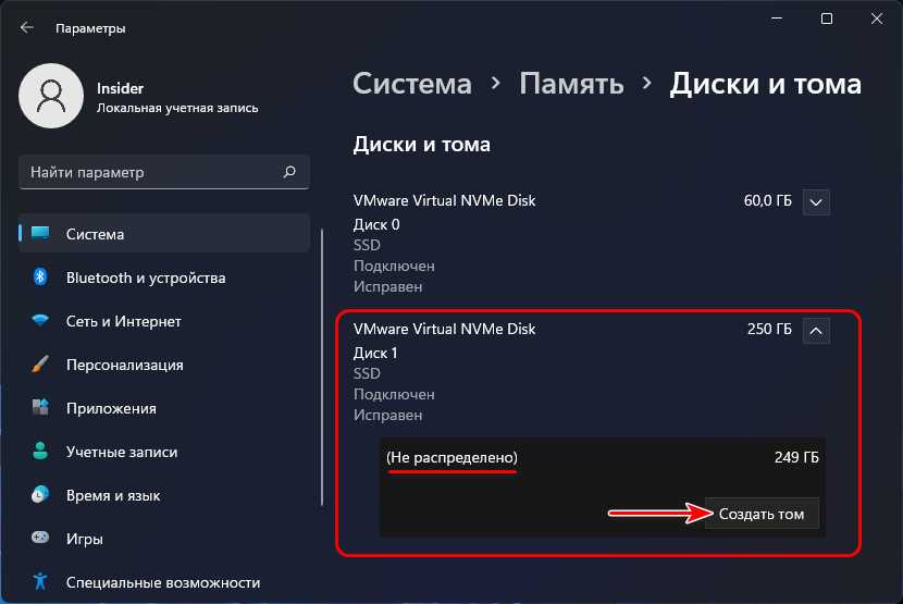 Если нужно разметить свободное дисковое пространство, нам предлагается функционал создания разделов. Жмём «Создать том».