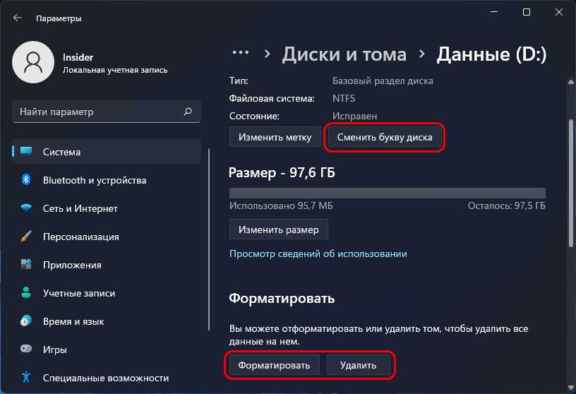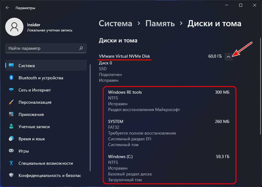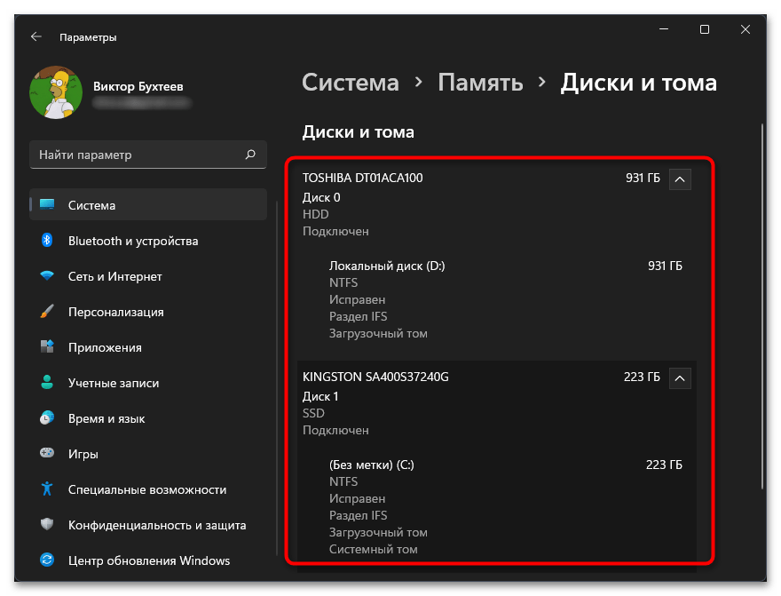 Microsoft в новых Windows старается постепенно переносить все основные системные настройки в приложение «Параметры». Скорее всего, в будущем управление дисками тоже полностью будет осуществляться через один из разделов в этом меню. Пока что в этом разделе в Виндовс 11 доступно только несколько основных настроек, доступ к которым осуществляется следующим образом: