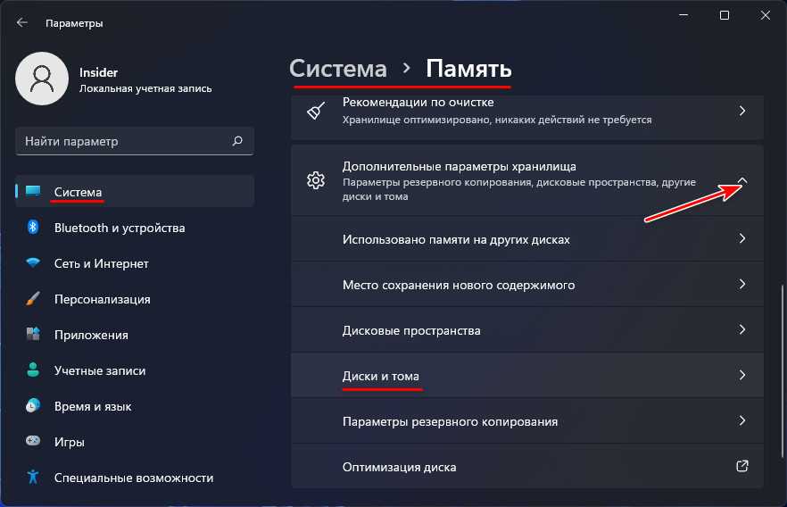 Для решения поставленной задачи в Windows 11 можно использовать современный аналог системного «Управления дисками» — интегрированные в системное приложение «Параметры» настройки по работе с дисковым пространством. Они, увы, не предусматривают карту дисков, т.е. схему дисков и разделов для визуальной оценки всего дискового хранилища компьютера, но в каких-то моментах современные настройки проще и удобнее, чем классическая утилита diskmgmt.msc.
