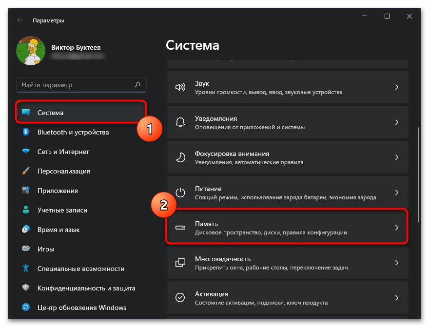 В новом окне выберите раздел «Система» и нажмите по плитке «Память».