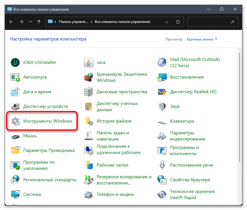 Понадобится дважды щелкнуть по иконке «Инструменты Windows», чтобы перейти к окну со средствами администрирования.