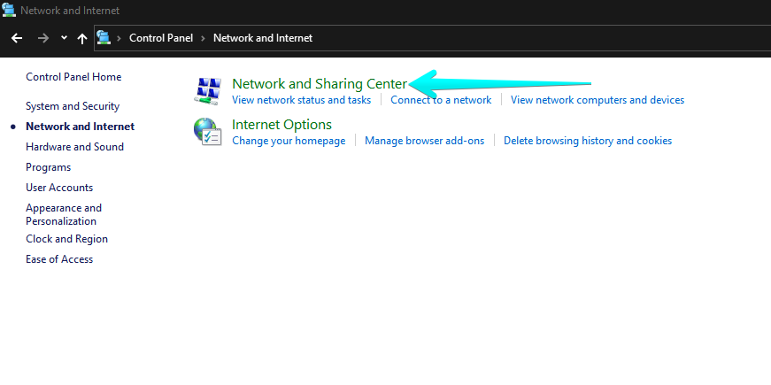 - On the ‘Network’ screen, select ‘Network and Sharing Center.