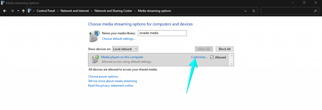 Можно и не пользоваться сторонними приложениями, так как решить проблему подключения помогает встроенный Windows Media Player 11 и более высоких версий. Для создания DLNA-сервера с его помощью необходимо всего лишь разрешить другим устройствам получать доступ к файлам мультимедиа на используемом компьютере. Для этого следует: