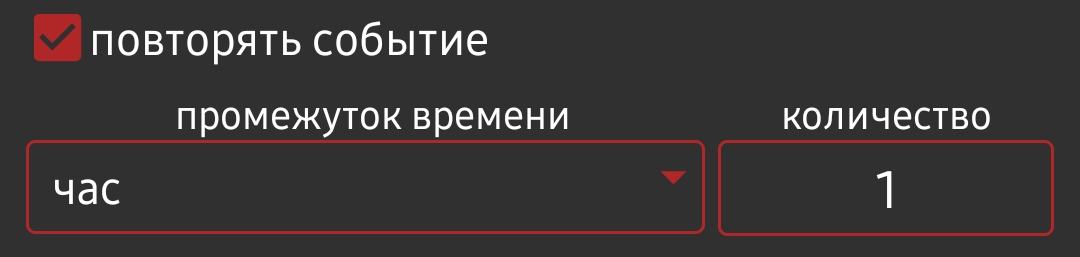 Если установить галочку “повторять событие”. В этом случае после окончания времени (текущее время стало равно времени окончания) будет выдано уведомление с содержанием первой строки и выполнена пролонгация.