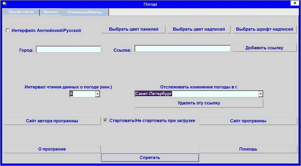 вариант запуска программы при загрузке Windows, интервал чтения данных о погоде.