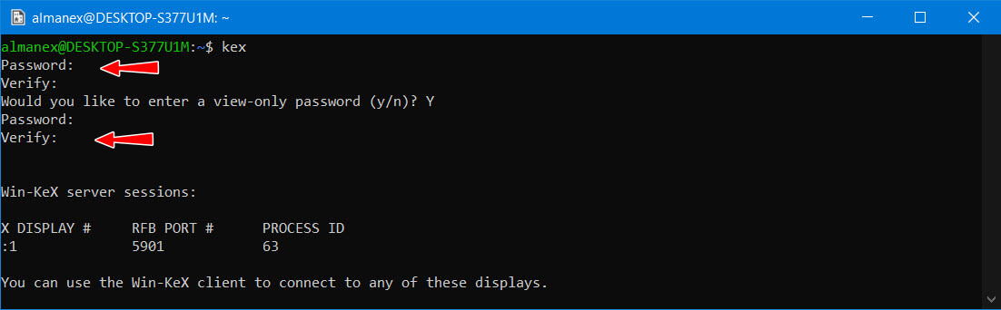 Запускается система с графическим десктопом через терминал командой kex с подтверждением действия вводом ранее заданного пароля администратора и нажатием Y.