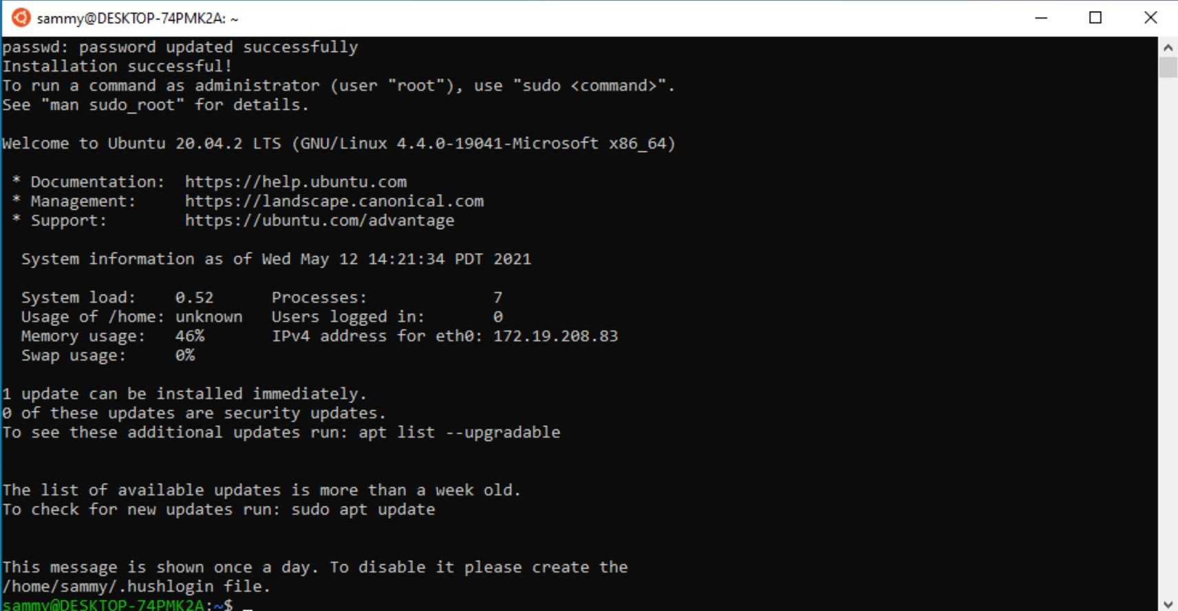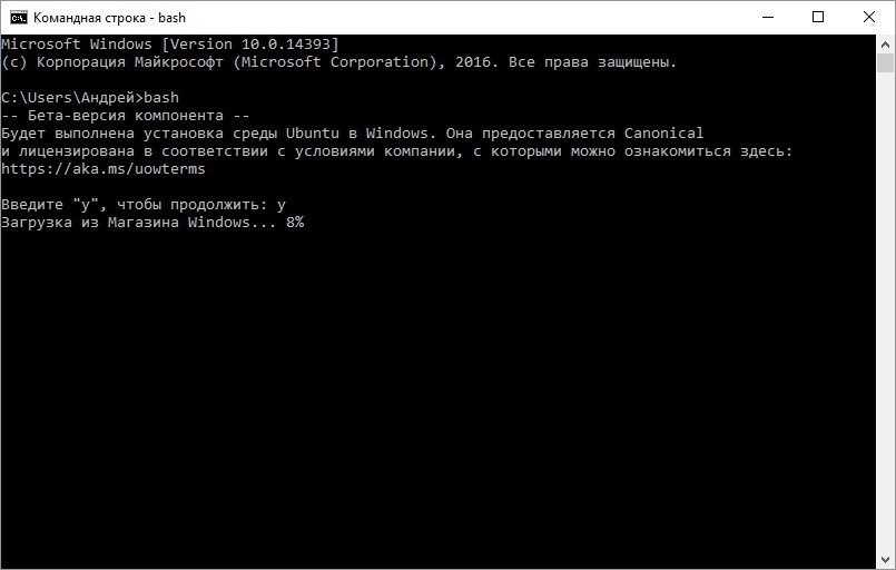 Судя по командам в Windiows мы установили UBUNTU LINUX, и тут нечего удивляться, так как эта система является лидером в мире Linux. Скорее всего все программы можно установить таким образом, но работать будут только консольные, графической оболочки у нас пока нет. Но именно ради нее я и затеял этот эксперимент, терминал у меня и так был для соединения с сервером.