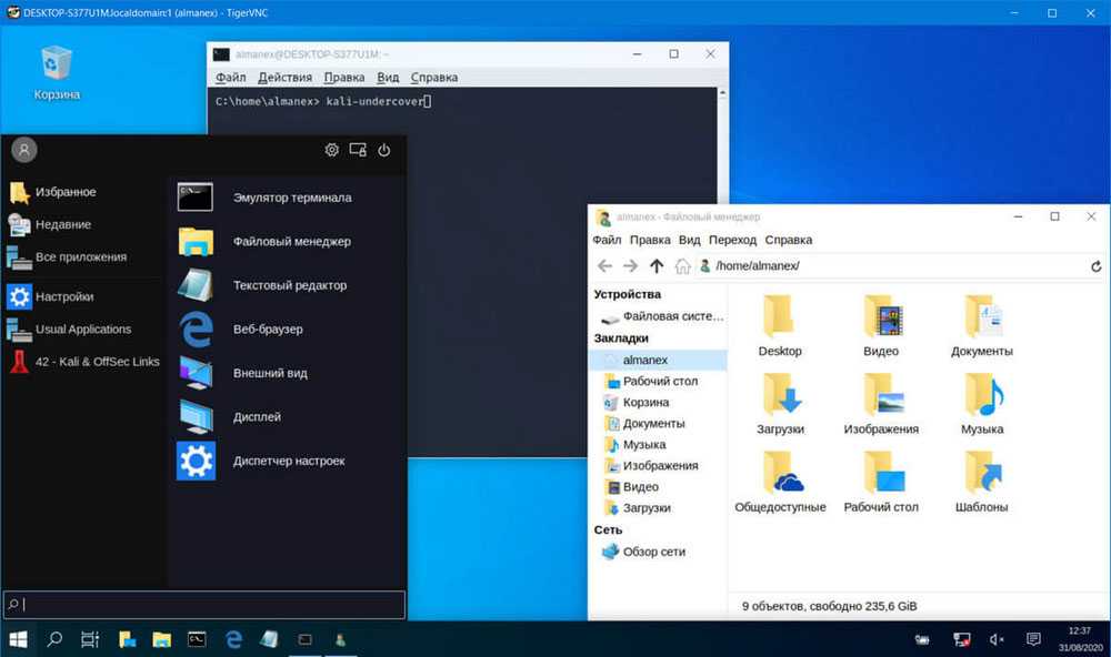 Вот и все, вы используете среду рабочего стола, установленную в Kali Linux, который сам по себе является приложением, установленным в Windows 10.