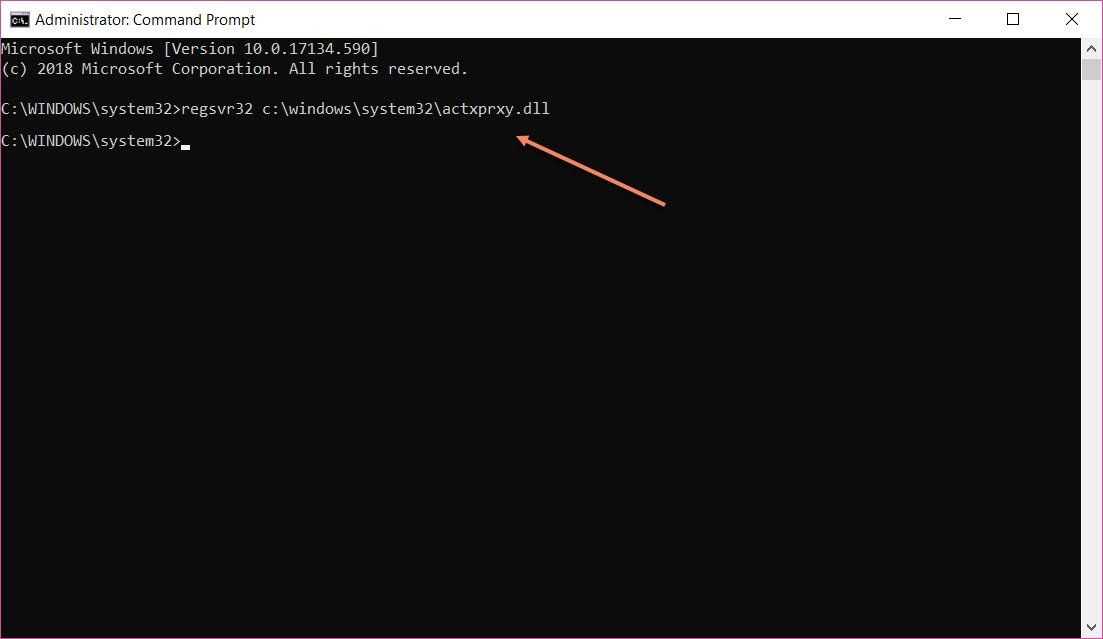 Тип «Regsvr32 c: \ windows \ system32 \ actxprxy.dll» и нажмите клавишу «Ввод»