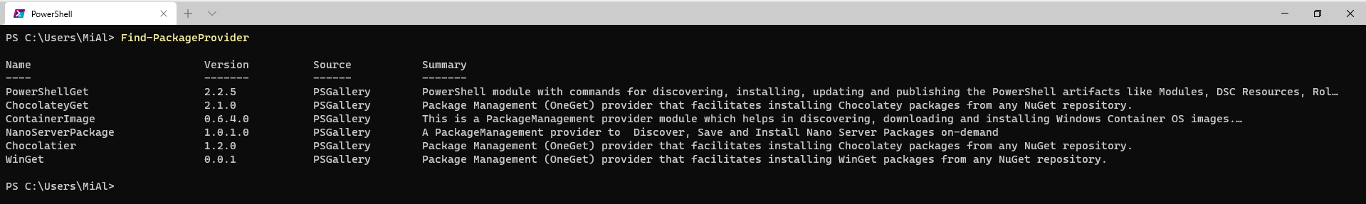 По умолчанию в системе установлено два источника пакетов: NuGet (nuget.org) и PowerShellGet (официальная онлайн-галерея скриптов PowerShell от MSFT). В первую очередь они рассчитаны на программистов и системных администраторов.