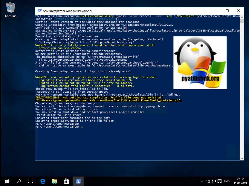 Set-ExecutionPolicy Bypass-Scope Process-Force; ::SecurityProtocol=::SecurityProtocol -bor 3072; iex ((Новый объект System.Net.WebClient) .DownloadString (‘https://chocolatey.org/install.ps1’))