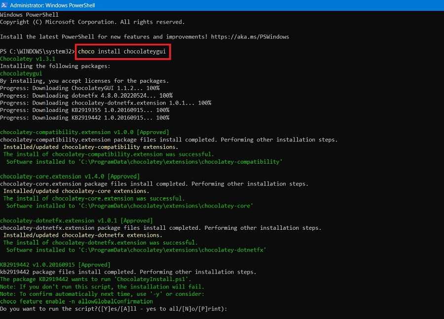 - Это начнет загрузку и установку программы GUL, которая вам понадобится для визуального управления Chocolatey.