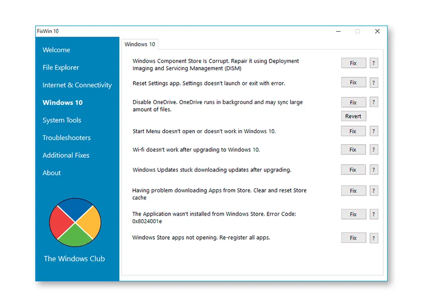 Некоторые программы для исправления ошибок в Windows 10 просто не работают, так как несовместимы с новой операционной системой. Софт FixWin 10 предназначен именно для починки Windows 10.