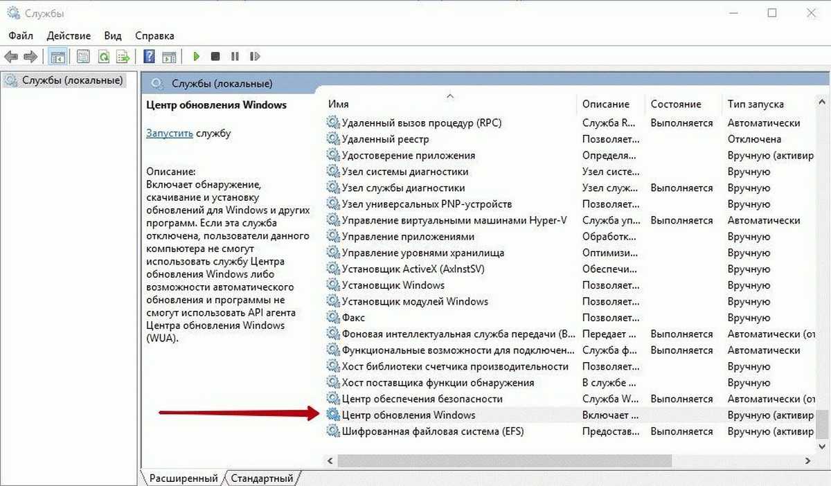 Шаг 2: Найдите запись службы Центр обновления Windows» и дважды кликните на ней, чтобы открыть диалоговое окно свойств.
