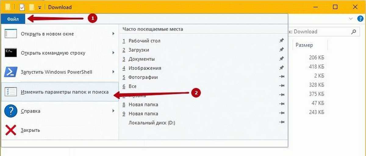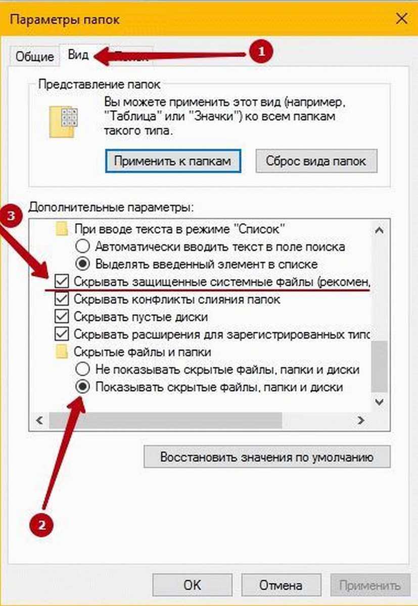 Шаг 5: В папке «Download», кликните меню «Файл» и нажмите кнопку «Изменить параметры папок и поиска». На вкладке «Вид», установите чекбокс напротив надписи «Показывать скрытые файлы и папки и диски». Затем снимите флажок перед опцией «Скрывать защищенные системные файлы» и нажмите кнопку «Применить» (см. картинки ниже).