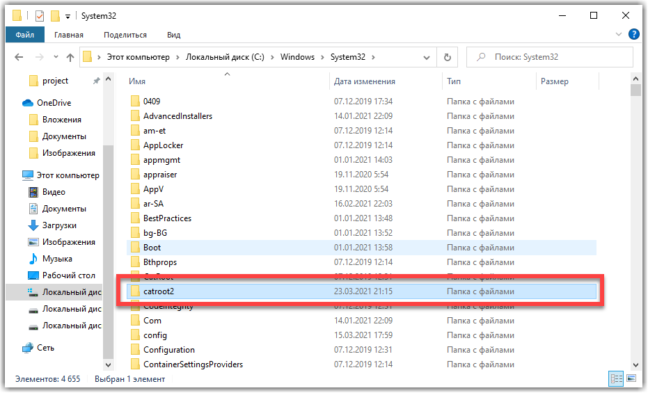 А затем остается открыть проводник и перейти по такому пути: C:\Windows\System32\. Там находим директорию Catroot2, выделяем ее, а после нажимаем клавишу Delete. Как результат – ошибка 80072efe в Центре обновления Windows будет исправлена. Для более полного эффекта можете перезагрузить компьютер.