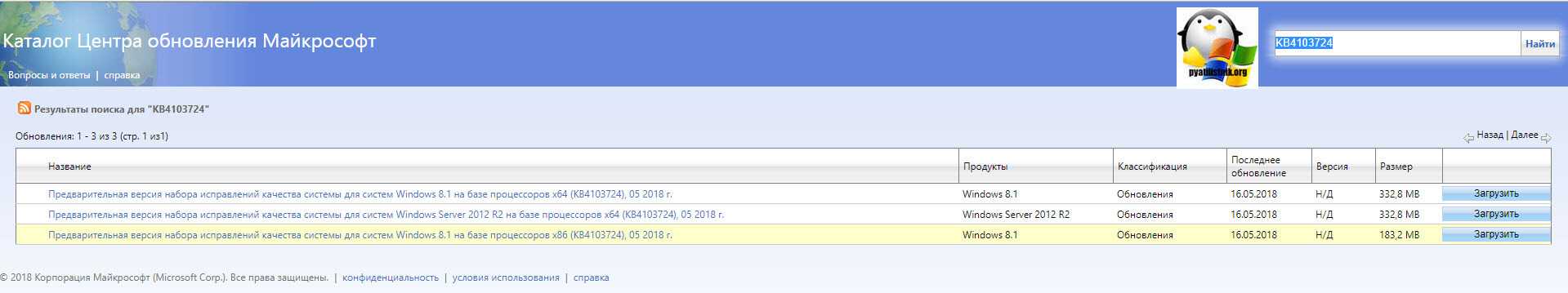 Далее зная нужный номер KB, открываем каталог Центра обновления Майкрософт, ссылка на него есть в описании пакета, в самом низу. В поисковой строке вводим номер нужного пакета KB.Нажимаем загрузить, для нужного пакета. Далее производим его установку и перезагружаем ваш компьютер, и проверяем наличие ошибки 0x80073701.