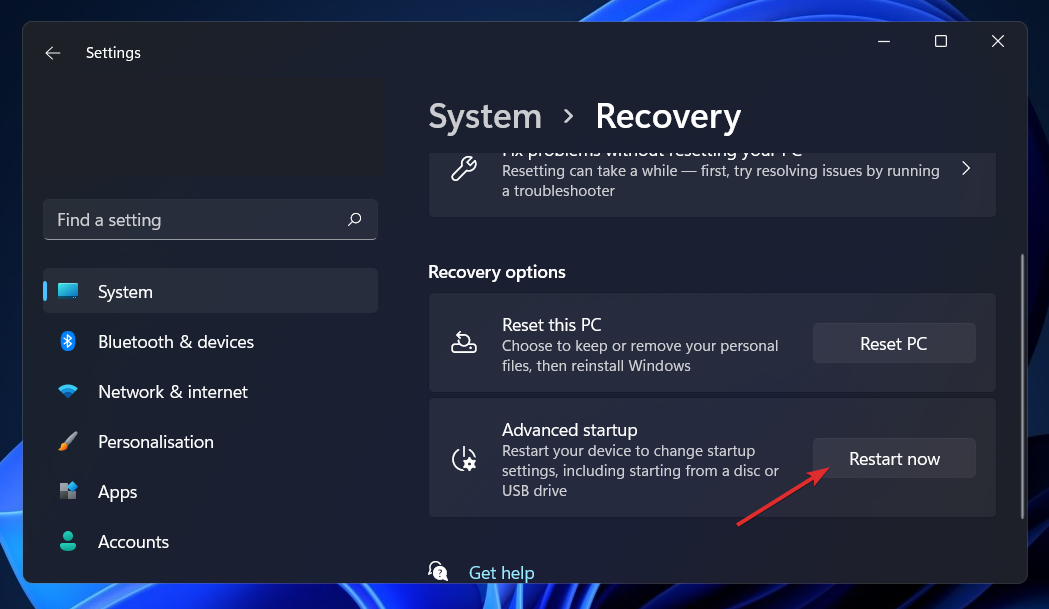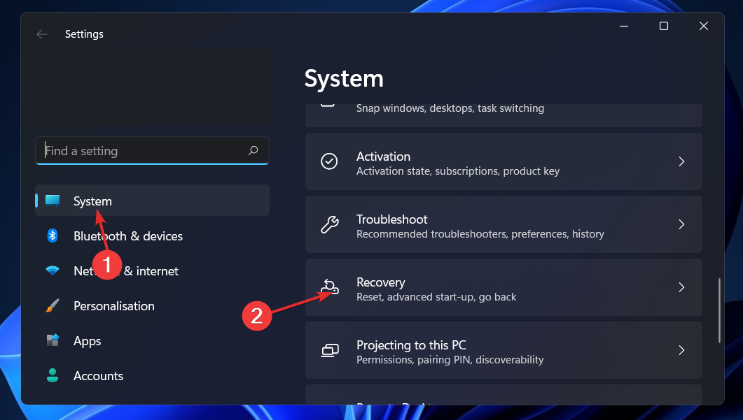 - Press the Windows key + I to open the Settings app, and navigate to System in the left panel followed by Recovery from the right side.