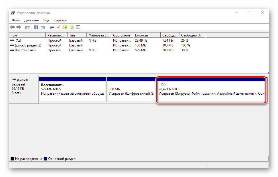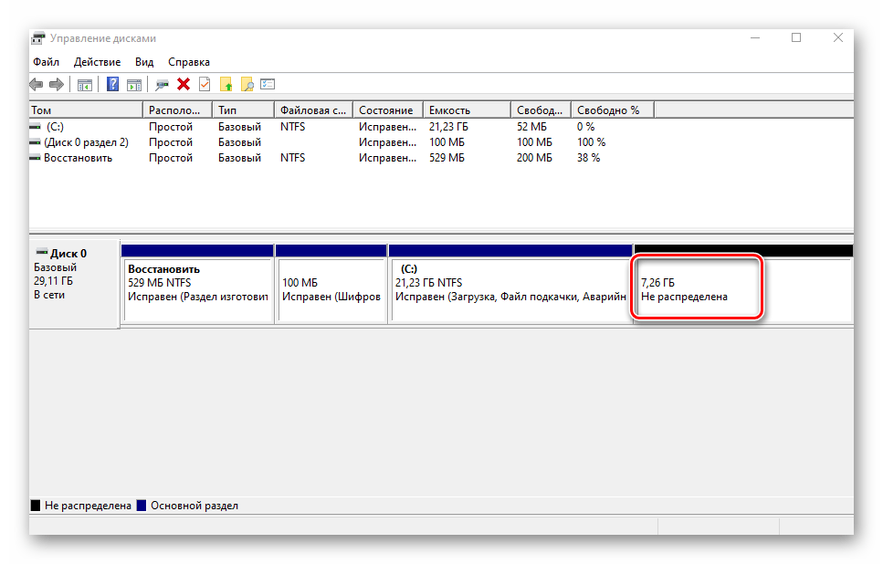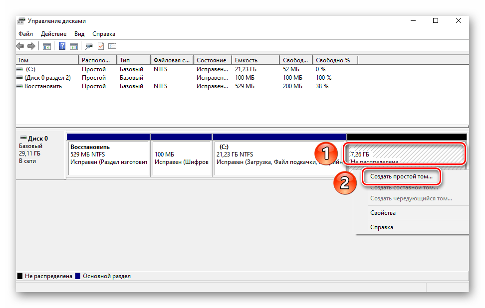 Разделение диска на разделы с помощью оснастки «Управление дисками»