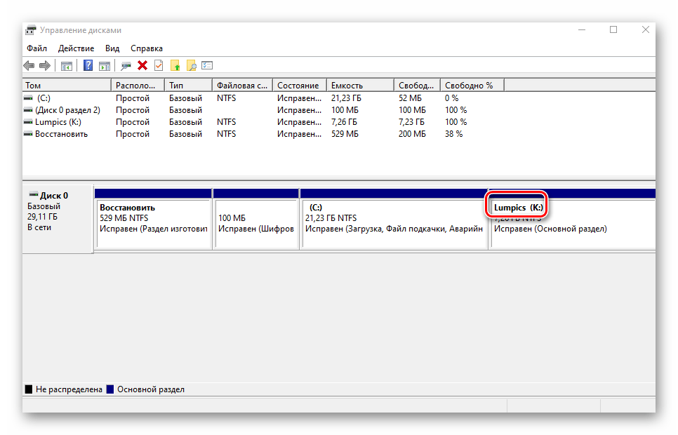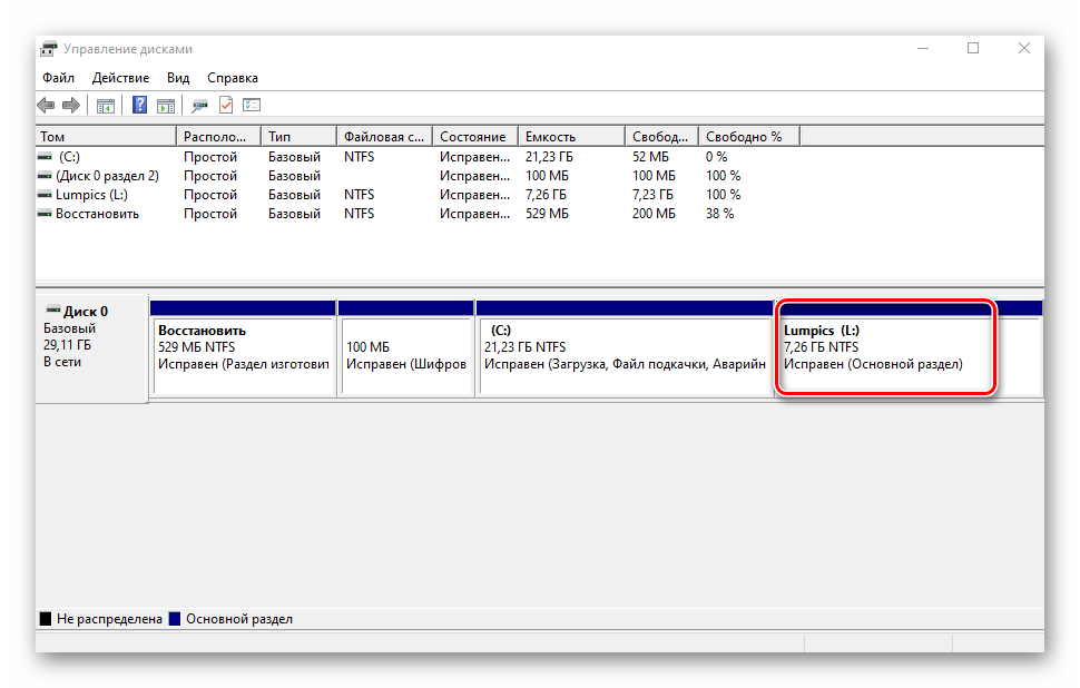 6. Убедитесь в создании раздела.Среди разделов физического диска появится новый логический диск.