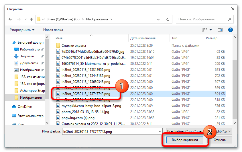 Во втором случае откроется «Проводник», в котором необходимо перейти в папку с желаемой картинкой, выделить ее и кликнуть по кнопке «Выбор картинки».
