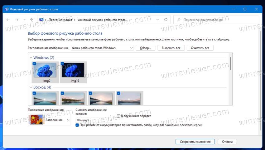 Вы также можете использовать классический диалог «Фоновый рисунок рабочего стола», являющийся частью страницы «Персонализация» классической Панели управления. Хотя Microsoft удалила эту станицы из устаревшей Панели управления, весь ее функционал остался нетронутым, — он просто скрыт от пользователя.