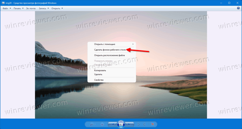 Более того, если вы активировали средство просмотра фотографий Windows, оно также позволит вам изменить фон рабочего стола.