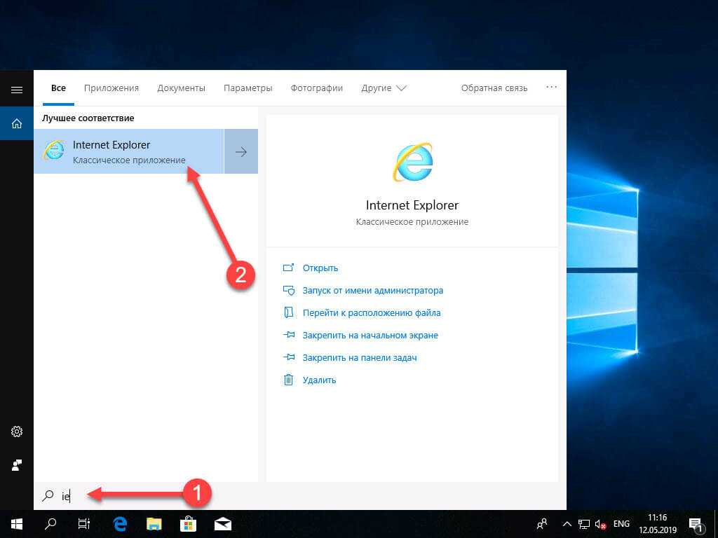 Шаг 1: Откройте браузер Internet Explorer, набрав Internet Explorer в меню Пуск или в строку поиска, а затем нажмите клавишу ввода.