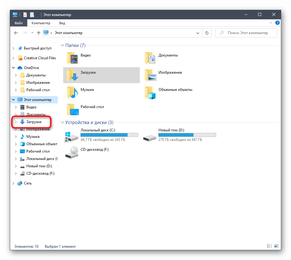 По умолчанию папка Загрузки на Windows 10 находится в пользовательском профиле. Чтобы найти папку Загрузки в Windows 10, откройте Проводник и выберите «Этот компьютер» в меню слева. В строке поиска сверху введите «Загрузки», и вам будет показан результат поиска с папкой Загрузки в списке.