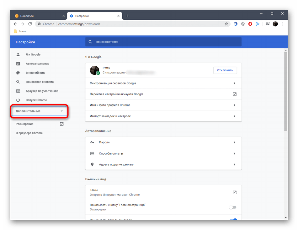 Чтобы переназначить направление для загружаемой информации в Chrome, нужно также нажать на троеточие и перейти в настройки браузера. Далее необходимо:
