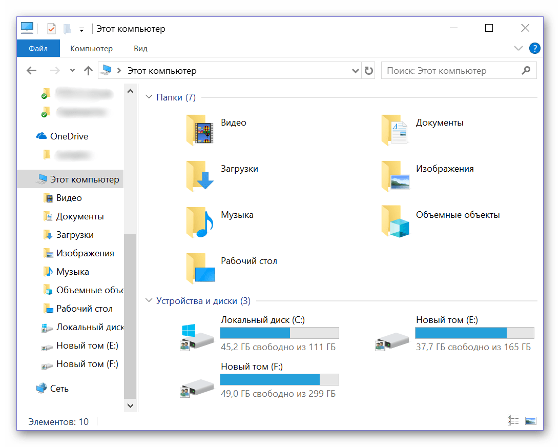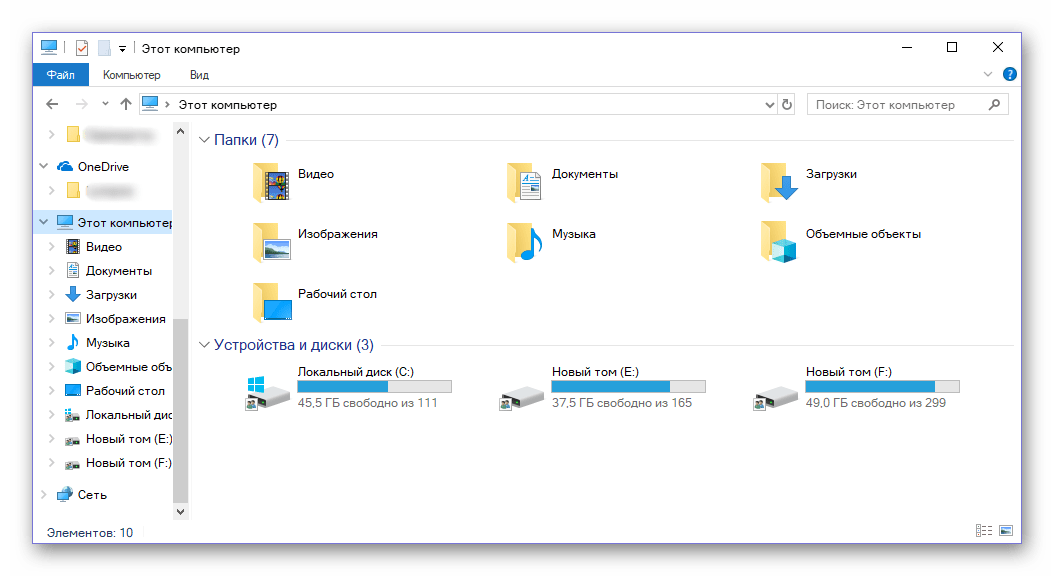 а вот так выглядит системный «Проводник» при масштабировании в 150%: