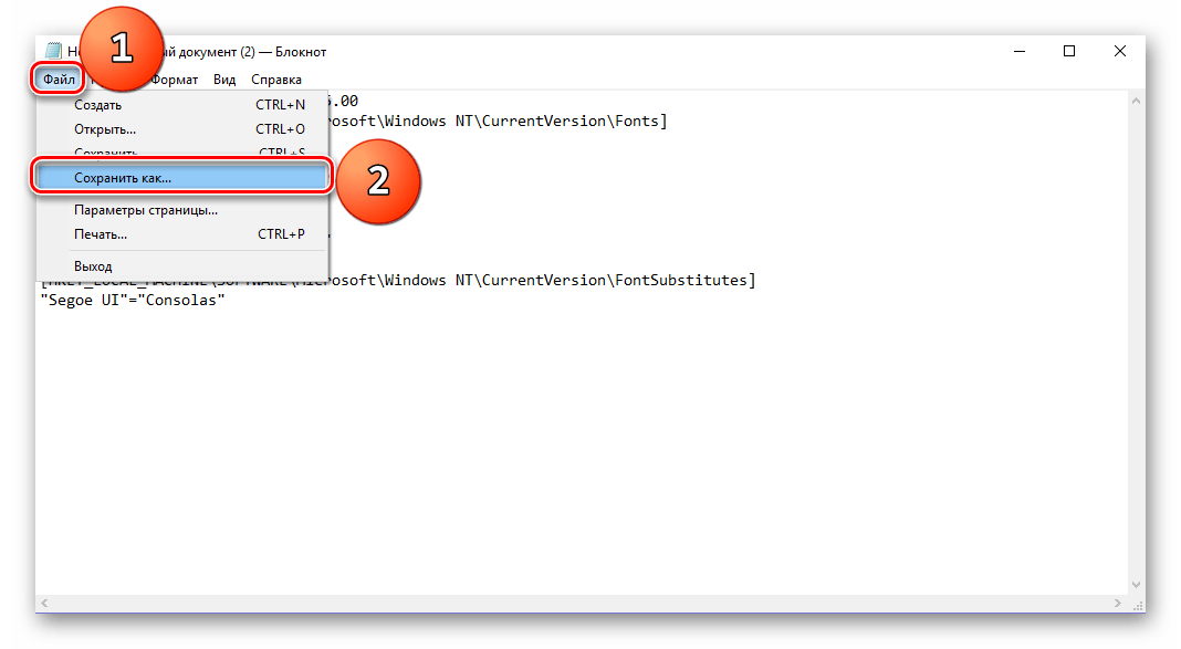 4. В последней строке (там, где написано «Segoe UI»=) изменить значение параметра «New font» на название понравившегося шрифта, писать которое придётся вручную, так как копирование в «Параметрах» не предусмотрено.