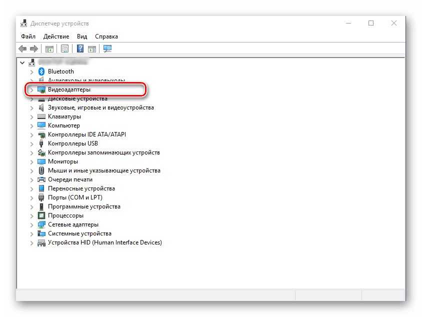 Оказавшись в окне «Диспетчера», найдите там раздел «Видеоадаптеры» и разверните его, кликнув ЛКМ по направленному вправо указателю.