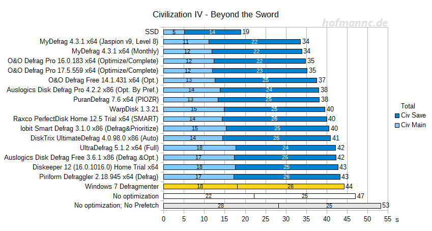 В Civilization IV: Beyond the Sword время произнесения заклинаний уменьшено в среднем на 14 секунд, или на 26%. Наиболее эффективным дефрагментатором является MyDefrag 4.3.1.