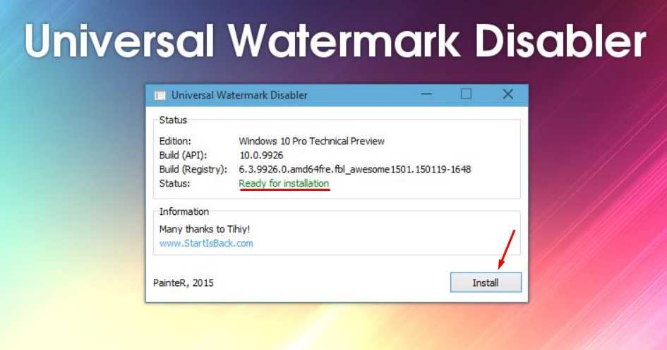 - В результате запустится утилита Universal Watermark Disabler. Нажмите на кнопку «Install» в новом окне.