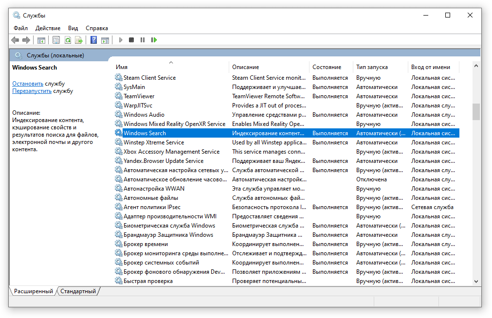 Как можно уменьшить нагрузку службы Microsoft Windows Search на процессор?