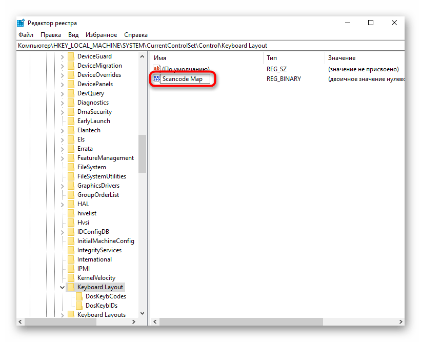 Следует обратить внимание, что последняя папка должна называться именно Keyboard Layout, а не Keyboard Layouts. В указанном разделе следует создать двоичный параметр