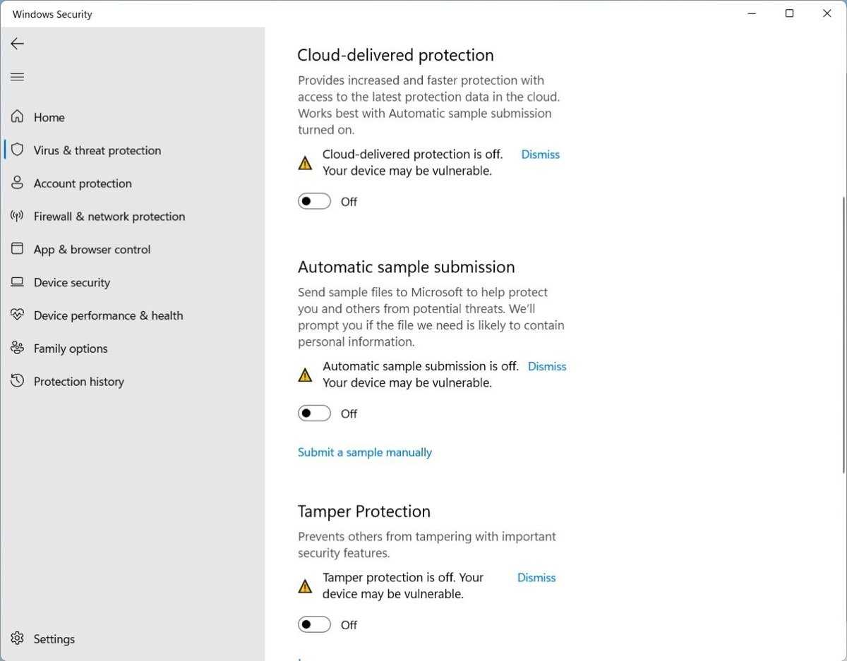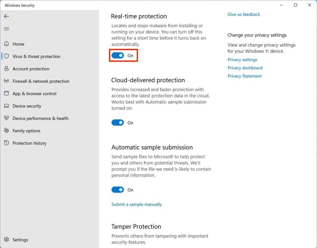 Turn off Defender Antivirus Protection on Windows 11 and 10