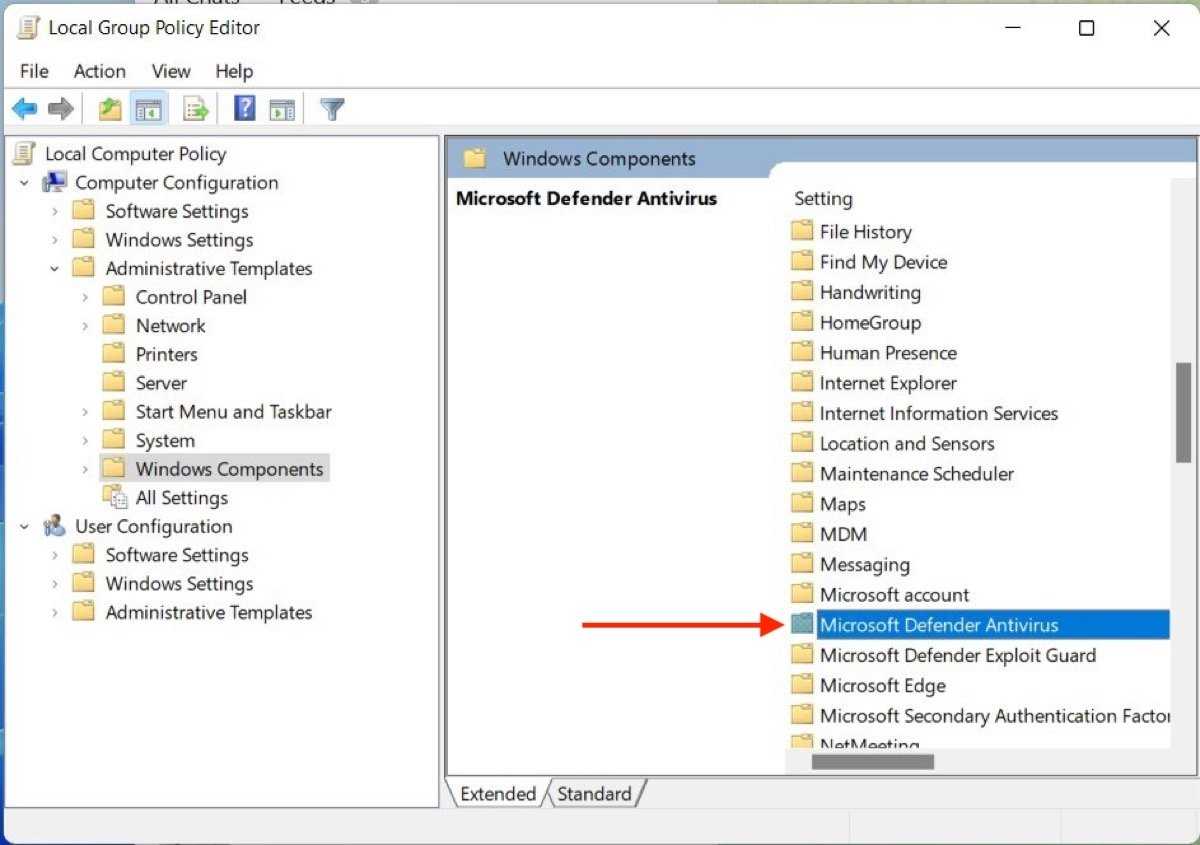Take a look at the list of folders that will appear on the right side of the window, and try to find the one named Microsoft Defender Antivirus. Open it with a double-click.