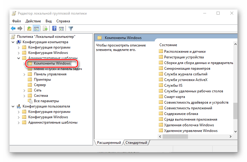 - Их шаблонов переходите к «КомпонентыWindows»;