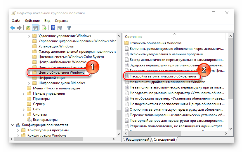 Найдите «Центр обновления Windows» и в разделе «Состояние» дважды кликните на пункте «Настройка автоматического обновления».