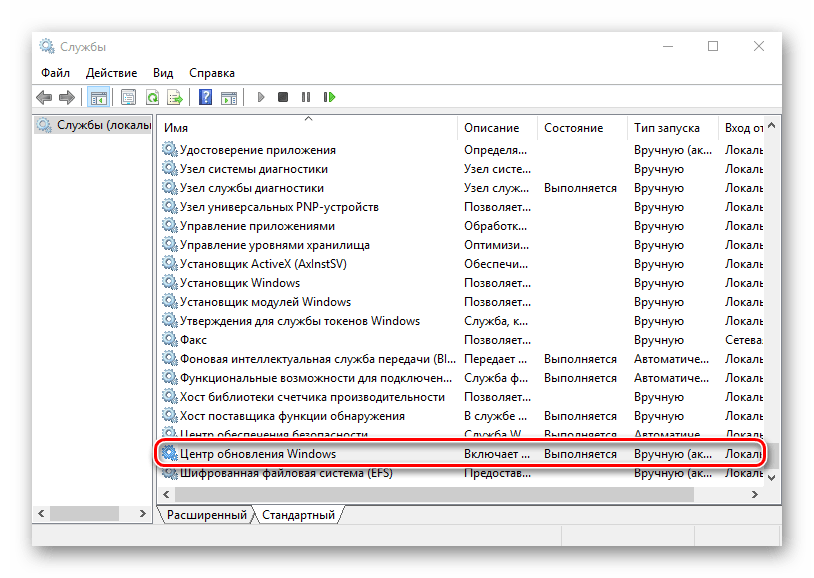 - Откроется список системных служб, в котором нас интересует «Центр Обновления»;