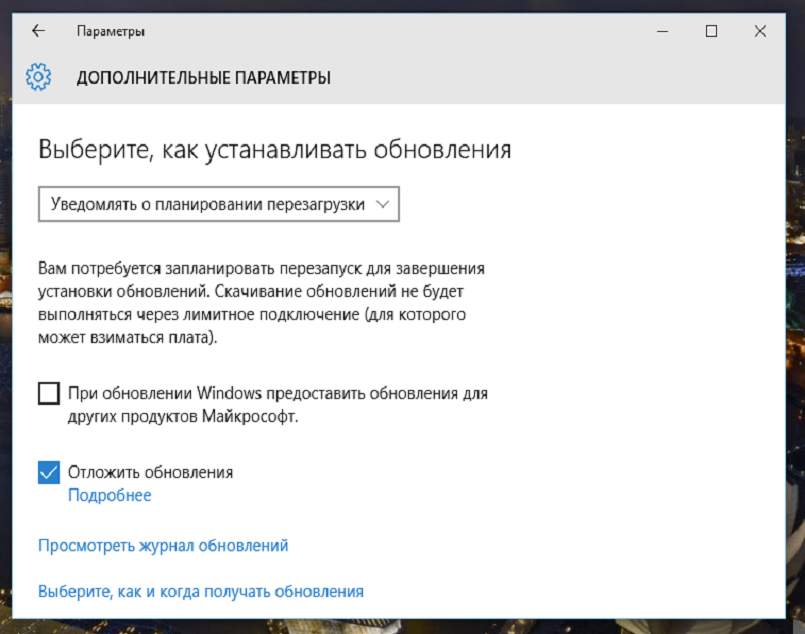 В операционной системе Windows 10 по умолчанию присутствует функция, которая позволяет отложить загрузку и установку обновлений на срок до 30-35 дней (в зависимости от сборки ОС). Для ее включения нужно выполнить несколько простых действий: