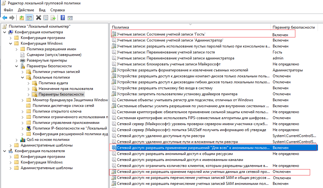 Локальные политики анонимного доступа