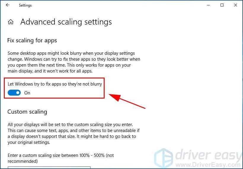 Вы также можете изменить настройки масштабирования DPI, чтобы исправить размытый экран или размытые приложения.