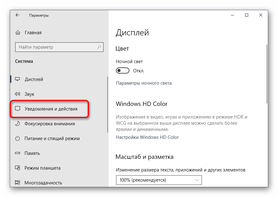 Самый простой способ отключить уведомления в «десятке» — использование настроек системы.