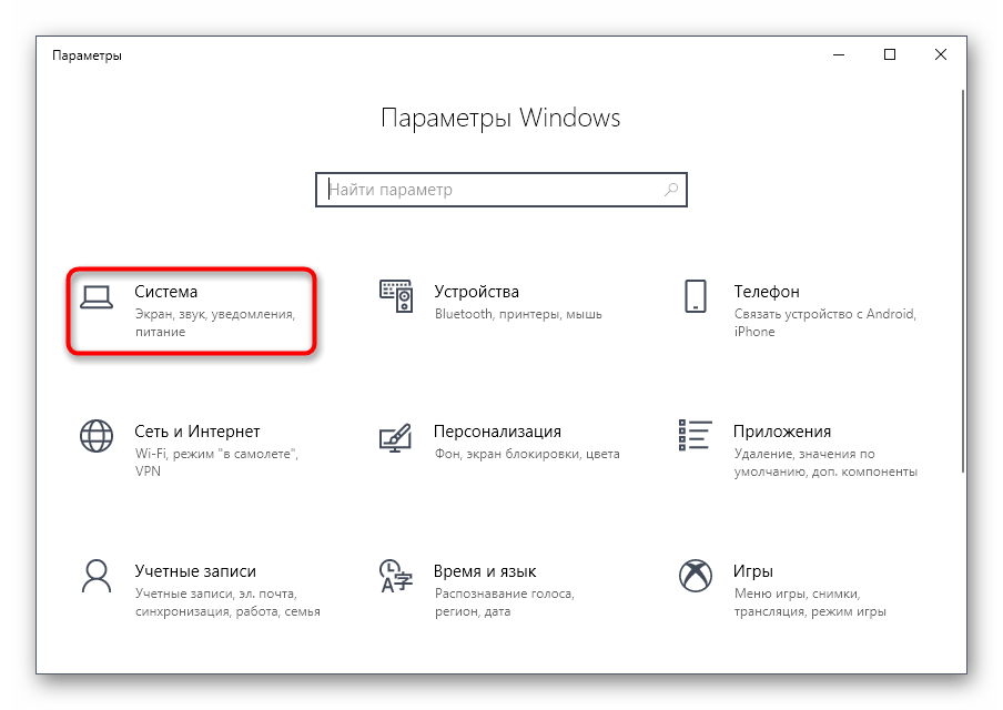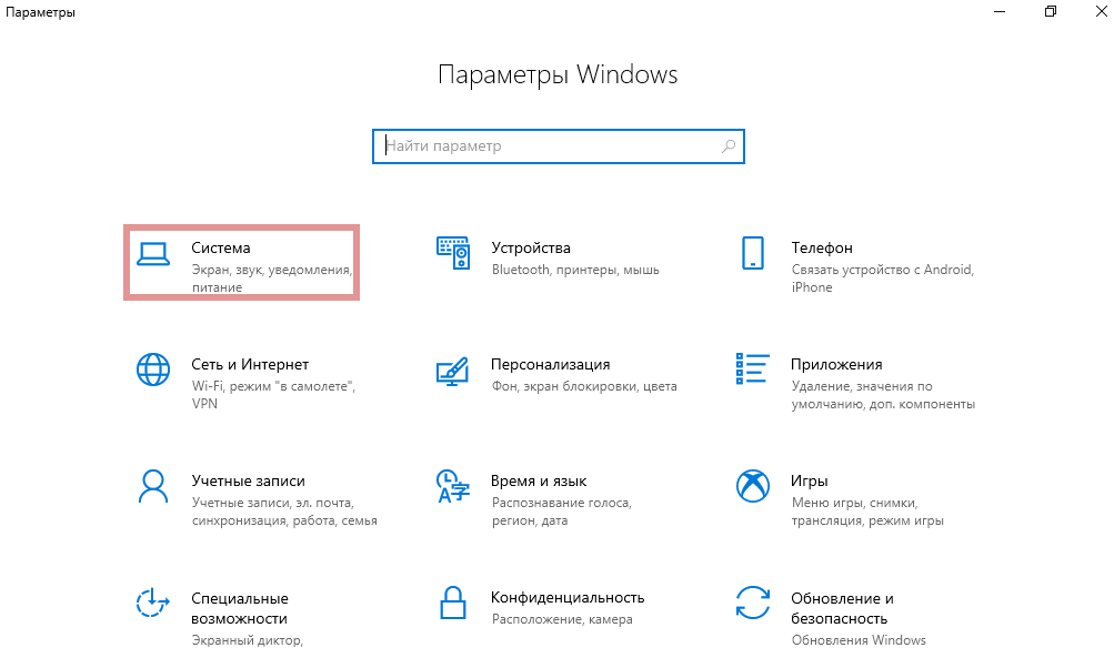 - В том же меню «Параметры» выберите первый раздел «Система».